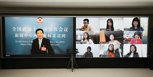 北京市政協主席魏小東(dong) 通過雲(yun) 平台接受集體(ti) 采訪。(北京市政協供圖)