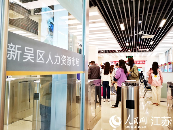 在無錫市新吳區人力資源市場,不少年輕人前來谘詢就業(ye) 落戶事宜。儲(chu) 霞攝
