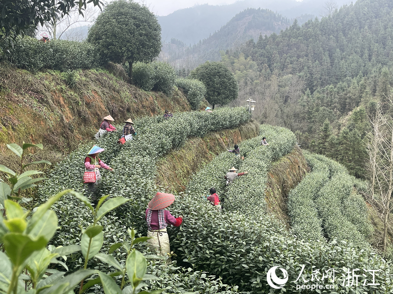 采茶工采摘開化龍頂頭茶。人民網 王蕭蕭攝