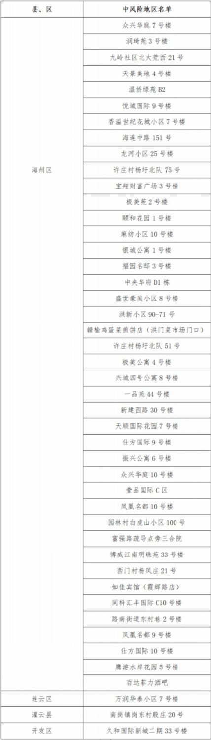 連雲(yun) 港市45個(ge) 中風險地區詳細名單(2022年3月10日)