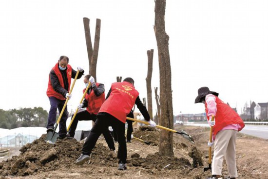 3月10日上午,嘉興(xing) 秀洲區組織機關(guan) 幹部和誌願者開展義(yi) 務植樹活動,大家用實際行動扮靚家園。(馮(feng) 玉坤)