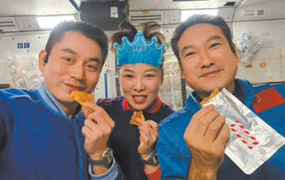 執行迄今時間最長一次太空飛行,神舟十三號航天員趕上了第一次在太空跨年,第一次在空間站過春節。在地麵團隊的精心保障下,航天員們(men) 除夕夜為(wei) 人們(men) 送上來自太空的新年祝福,在空間站度過了年味十足、充實精彩的虎年春節。從(cong) 太空出艙、“天宮課堂”開講,到手控遙操作完成貨運飛船與(yu) 空間站組合體(ti) 交會(hui) 對接試驗,從(cong) 中國女航天員首次太空漫步,到3名航天員太空飛行累計超100天,太空“出差”期間,航天員們(men) 開展了一係列空間科學實驗和技術試驗,刷新了一個(ge) 又一個(ge) 中國航天紀錄,為(wei) 中國空間站正式建成打下堅實基礎。