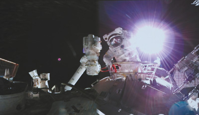 在北京航天飛行控製中心拍攝的葉光富出艙畫麵。