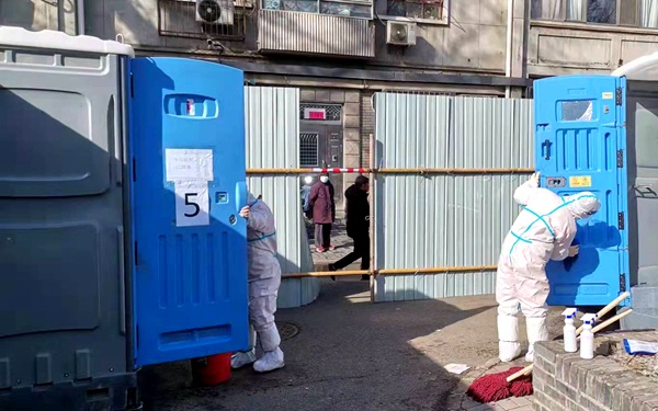 剛封閉不久,北新橋街道後永康胡同東(dong) 口便增加了2座臨(lin) 時單坑的移動公廁,為(wei) 後永康胡同1號院、11號院隔離居民和防疫人員提供服務;民旺社區周邊胡同連夜搭建了12座單坑臨(lin) 時移動公廁,在民旺南胡同為(wei) 底商設置2座單坑臨(lin) 時移動公廁;在北新橋育樹胡同周邊,11座移動公廁也安裝完成。