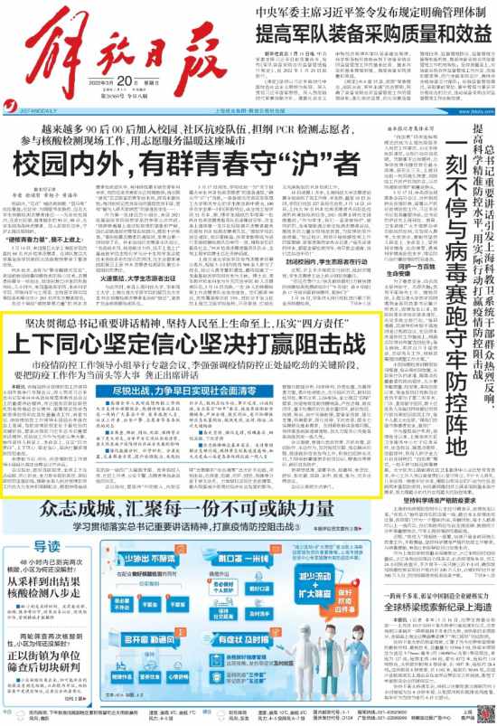 3月18日,上海市委常委會(hui) 舉(ju) 行會(hui) 議,要求堅決(jue) 貫徹落實習(xi) 近平總書(shu) 記重要講話精神,堅持人民至上、生命至上,堅持科學精準、動態清零,上下同心,堅定信心,采用“切塊化、網格化”分區分級差異化精準防控,一鼓作氣打贏疫情防控阻擊戰,最大限度減少疫情對經濟社會(hui) 發展的影響。
