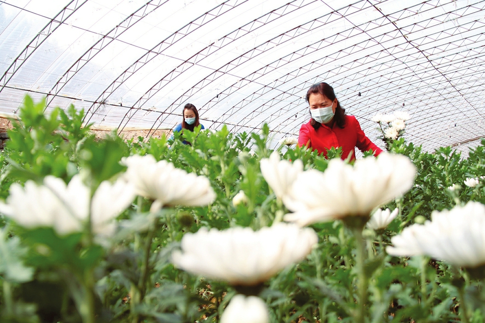 3月23日,遊客在陽城縣騰佳農(nong) 業(ye) 開發有限公司鮮花種植基地采摘白菊花。近日,該基地60餘(yu) 畝(mu) 大棚白菊花進入采摘期,吸引眾(zhong) 多遊客前來參觀采摘。近年來,陽城縣依托“鮮花經濟”,推進農(nong) 業(ye) 、林業(ye) 與(yu) 旅遊等產(chan) 業(ye) 深度融合發展,形成以農(nong) 興(xing) 旅、以旅促農(nong) 的良性發展模式。(陳來全攝)