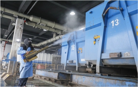 東(dong) 台環衛處對垃圾中轉站、環衛車輛、果皮箱、公共廁所等進行消殺大掃除,築牢公共環境安全屏障。東(dong) 台市委宣傳(chuan) 部供圖