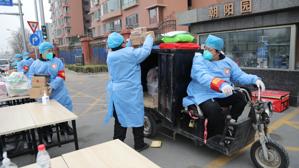 北京朝陽園小區:一線防疫人員當臨時"騎手" 保障居民生活