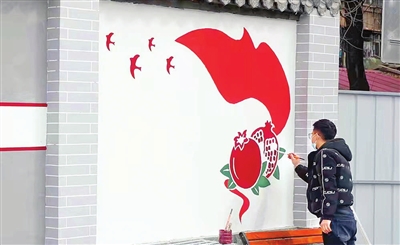 圖為(wei) 專(zhuan) 業(ye) 人員對牆體(ti) 進行主題彩繪。朱明鑰 李朋林 攝影報道