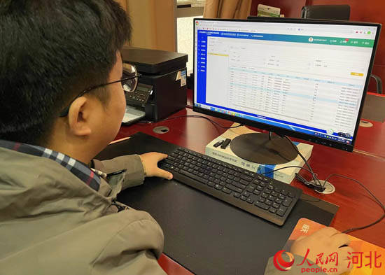 工作人員通過河北省建築工人實名製和分賬製管理公共服務平台監測某項目農(nong) 民工考勤記錄。 人民網 林福盛攝