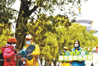 “又是一年春來到,天壇公園即將迎來百花競相開放、處處鳥語花香的生機時節。我們(men) 增強巡視力度頻次,著統一工服、佩戴紅袖標,根據花期精準管理。對未規範佩戴口罩、紮堆聚集的遊客耐心勸導,及時勸阻壇牆刻畫、采挖野菜、采摘果實、攀折花木、踐踏草地等不文明行為(wei) ……”3月25日,天壇公園在祈年殿景區西側(ce) 舉(ju) 辦“愛護天壇 文明有我”文明遊園啟動儀(yi) 式,天壇公園工作人員向廣大遊客市民發出文明遊園倡議。