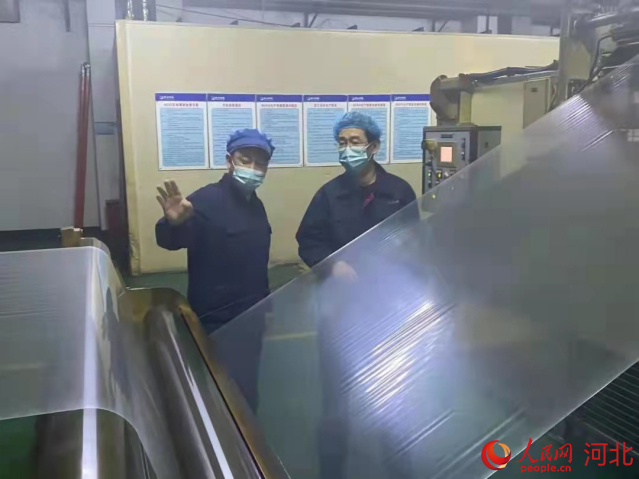 河北金達塑業(ye) 有限公司複工工人正在檢驗產(chan) 品。 栗兵攝