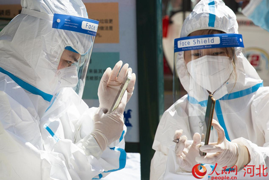 張振是滄州市人民醫院胃腸外科的護士。去年,他曾到槁城支援核酸采集工作。這一次,接到緊急任務通知後,有核酸采集經驗的他再次與(yu) 同事奔赴核酸采集點。“前幾天我們(men) 在河西北街社區采集核酸,每人每天大概要采600餘(yu) 人的樣本。”電話裏,張振的聲音略微沙啞。