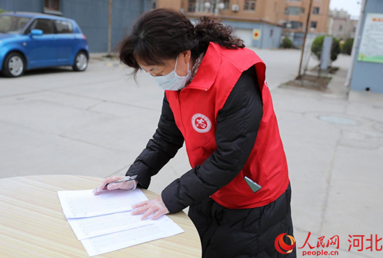 河間市的誌願者身穿紅馬甲在防控一線提供誌願服務。 李世文攝