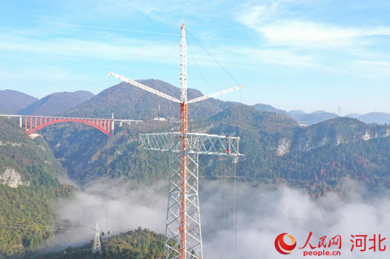 河北送變電公司員工組塔階段雲(yun) 端作業(ye) 。 王學恩攝