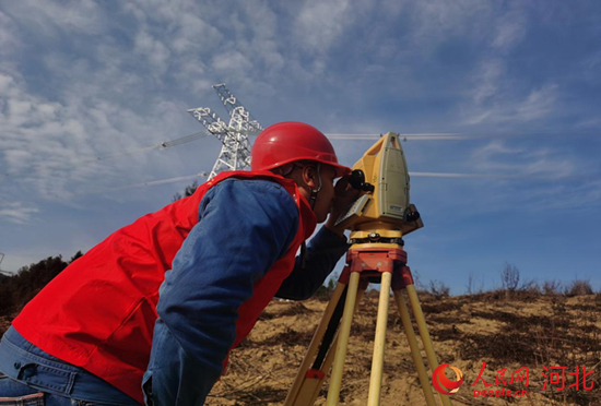 河北送變電公司作業(ye) 人員細致勘測。 程冰峰攝