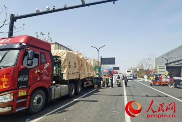 通農(nong) 物流臨(lin) 時交易區內(nei) ,一輛輛卡車運來各類新鮮的蔬菜。人民網記者 王繼亮攝