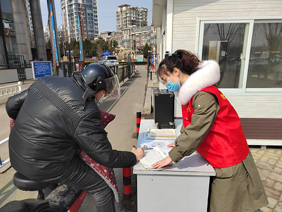 遷安市委組織部年輕黨(dang) 員李洋在頤秀園小區卡口執勤。 遷安市委宣傳(chuan) 部供圖