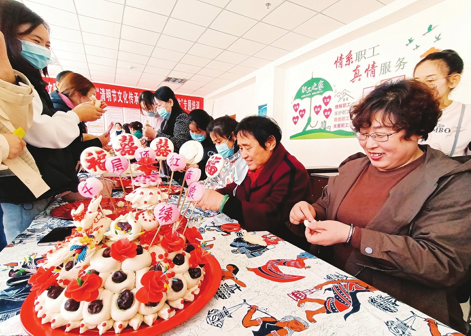 三月二十七日,石樓縣新時代文明實踐中心開展“清明節文化傳(chuan) 承教育和傳(chuan) 統美食製作”專(zhuan) 題培訓,邀請“麵花”手藝人現場教授捏麵燕,倡導移風易俗、文明祭祀。(李晶晶攝)