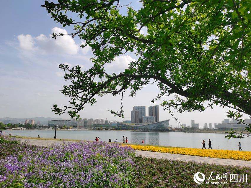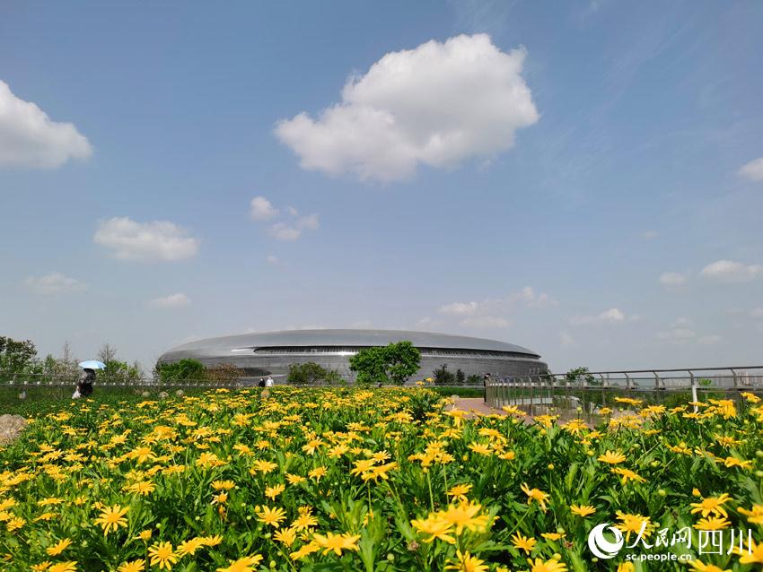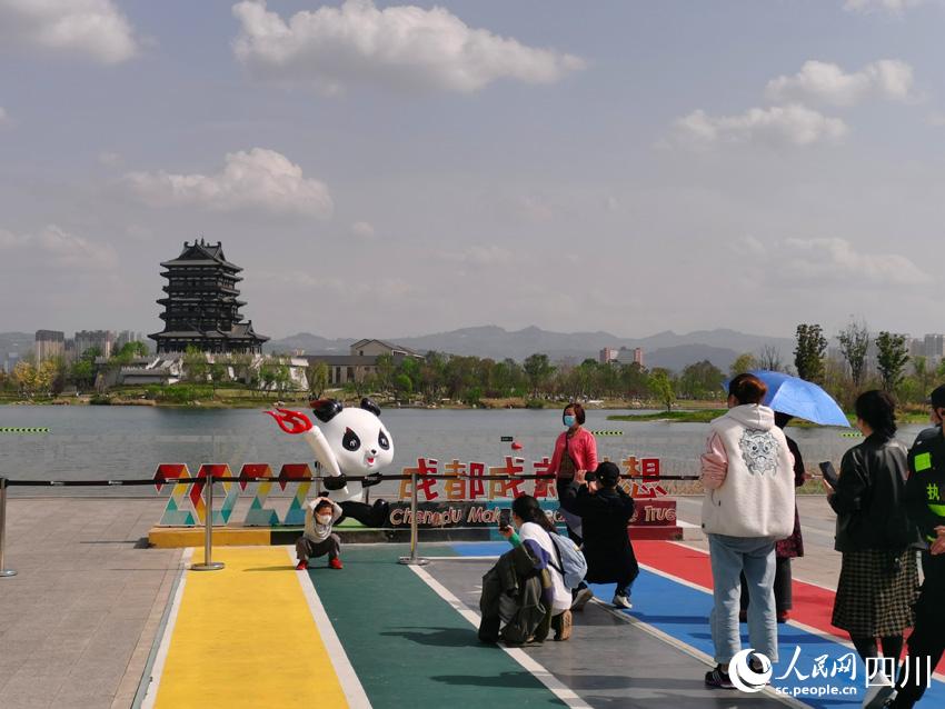 龍泉山脈綿亙(gen) 遠方,東(dong) 安湖水蕩漾眼底,體(ti) 育場館巍峨半空,花草樹木各展春姿。在湖光山色之間,有大量市民前來踏青賞春,順便欣賞著大運會(hui) 場館和火炬塔的風采。