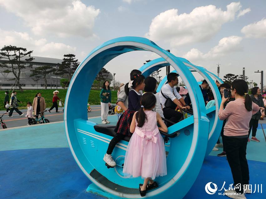 在這個(ge) “熊貓火炬手”的對麵,一條“體(ti) 育星光大道”綿延鋪展而來。在這條路上,每隔一段距離就會(hui) 有一組圖標和漢字,標注著某一項體(ti) 育運動,如網球、跳水等。這個(ge) 構思,從(cong) 整體(ti) 上詮釋了大運會(hui) 蘊含的眾(zhong) 多體(ti) 育項目,也能讓那些偏好某個(ge) 項目的遊客找到喜歡的體(ti) 育坐標點,提升起體(ti) 育遊園的氣氛。