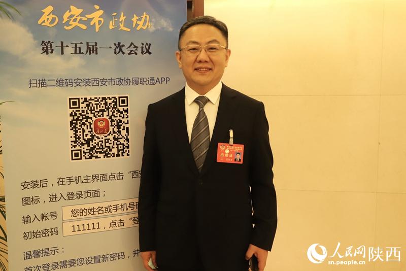 西安市政協委員、臨(lin) 潼區副區長霍炳男接受人民網采訪。人民網鄒星 攝