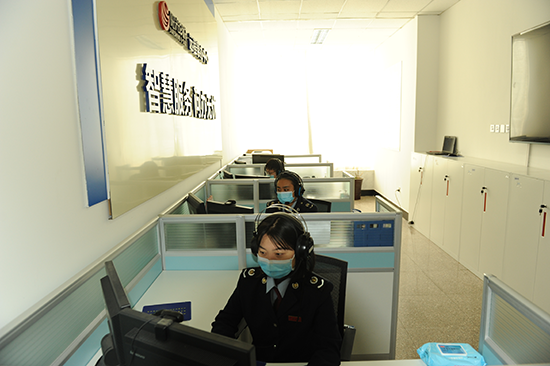 唐山高新區稅務局遠程幫辦中心服務人員在疫情期間堅持值守崗位、加強服務。 韓堯攝