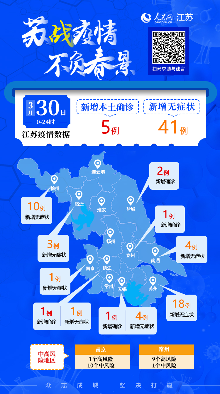 3月30日江蘇新增本土確診病例5例 本土無症狀感染者41例