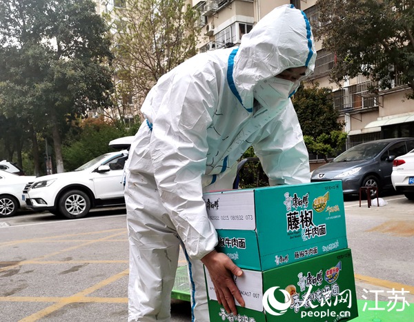 出不去的“外賣大哥”朱運東(dong) 幫著搬運物資。受訪者供圖