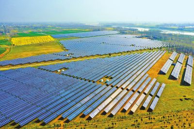 圖為(wei) 正陽縣大林鎮軍(jun) 耕家庭農(nong) 場農(nong) 光互補光伏電站項目。棚頂架上太陽能,棚內(nei) 牛羊生長壯,菜花黃來桃花香,采摘果蔬又觀光……該項目正成為(wei) 實現“農(nong) 村美、農(nong) 民富、農(nong) 業(ye) 強”的鄉(xiang) 村新景(3月28日攝)。高萬(wan) 寶 攝