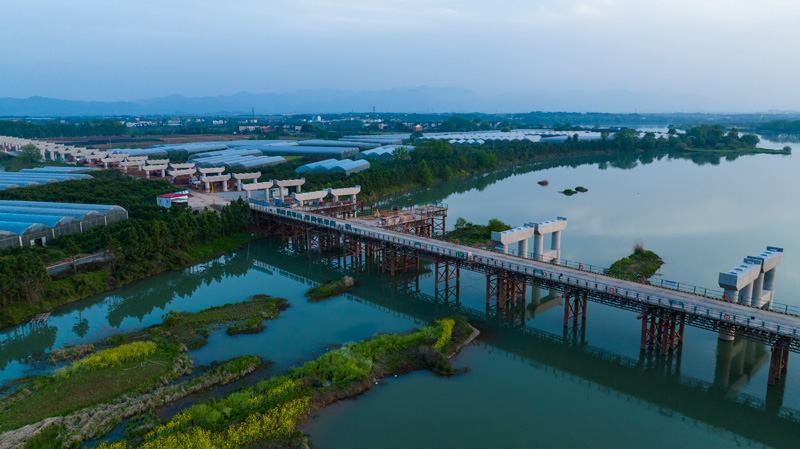 4月1日,在杭金衢高速公路改擴建二期新增衢江互通連接線重要節點跨衢江大橋,100多名工人在現場開展大橋梁板架設和主橋墩的圍堰施工。衢州地區3月24日解除疫情Ⅰ級響應相繼複工複學複市後,浙江省交通集團杭金衢改擴建二期項目第一時間複工,並於(yu) 3月28日全部複工達產(chan) 。