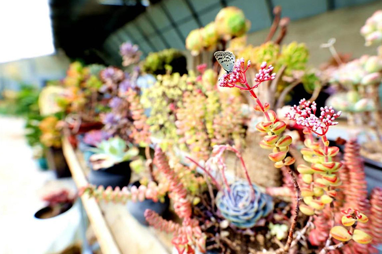 “目前我們(men) 基地投資建設的6個(ge) 農(nong) 業(ye) 溫室大棚,占地麵積6700平方米,可售多肉品種達170餘(yu) 種,春秋兩(liang) 季是多肉植物生長最旺盛的季節,溫差大,且顏色鮮豔。目前,我們(men) 的主要工作就是對多肉植物進行繁殖,根據植物種類的不同,繁殖的方法主要有播種繁殖、扡插繁殖、分株繁殖以及嫁接繁殖。”多肉基地負責人路秀華介紹說。