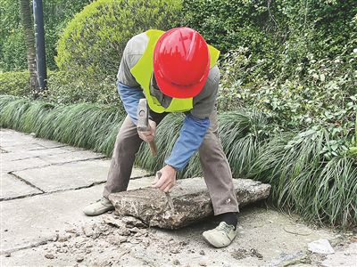 “我們(men) 秉持‘最小幹預’的原則——結構層穩定的老石板,原則上不修;需要修繕的老石板,則嚴(yan) 格遵守‘修舊如舊、保留肌理’的原則。”杭州園林設計院股份有限公司相關(guan) 負責人介紹,“一般兩(liang) 種情況下才進行修複,一是樹池周邊起拱、鬆動嚴(yan) 重,二是老石板破損、鬆動嚴(yan) 重。”