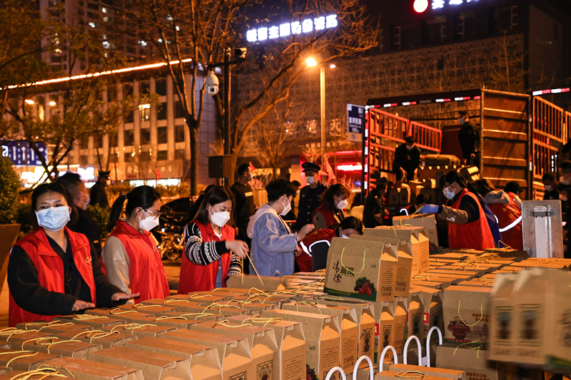 西紅柿、西葫蘆、西蘭(lan) 花、黃瓜……一箱箱“愛心菜”為(wei) 轄區居民提供強有力的生活保障,鼓舞著大家戰勝疫情的信心。(攝影:張瑞鵬)