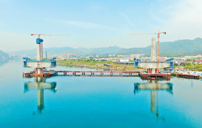 4月10日,杭(杭州)衢(衢州)鐵路建德段新安江特大橋主塔成功封頂,預計今年11月可實現大橋合龍。新安江特大橋全長1260.09米,主橋為(wei) 長480米矮塔斜拉橋,主跨224米跨越新安江,是杭衢鐵路全線重難點控製性工程。
