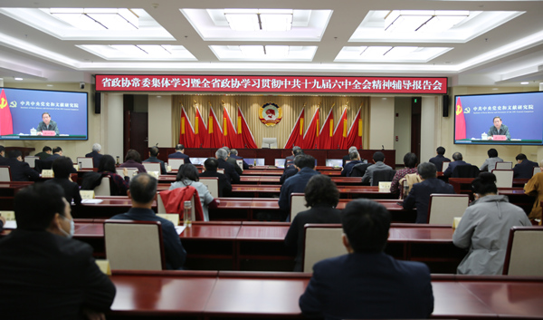 河北省政協舉(ju) 辦常委集體(ti) 學習(xi) 暨全省政協學習(xi) 貫徹中共十九屆六中全會(hui) 精神輔導報告會(hui) 對中共十九屆六中全會(hui) 精神進行係統深入解讀。胡澤瑞攝