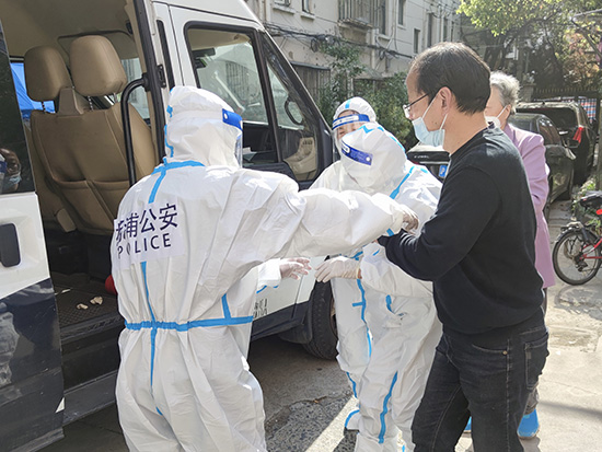 封控管理期間,要求普通市民足不出戶,要想轉運彭老伯去到他女兒(er) 家,首先就要確認清楚,彭老伯是否具備外出條件。據了解,彭老伯所在的樓棟,最近14天核酸檢測全部陰性。因接到求助時,楊浦區尚未通報“三區”安排,考慮到彭老伯的實際需求,四平路派出所立即聯係相關(guan) 防疫部門,得到了可以在做好防護的情況下出小區的答複。