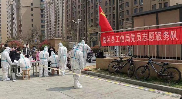 3月31日臨(lin) 沭縣發現無症狀感染者病例後,縣工信局聞令而動,迅速組織人員集結奔赴幫包網格小區,當日協助開展全員核酸檢測3550餘(yu) 人次,隨後又完成封控區上門核酸檢測、執勤區域搭建、特殊群體(ti) 人員排查、夜間值守等工作。 同時招募社區誌願者協助封控區居民每日運送生活物資、生活垃圾1000餘(yu) 份。在與(yu) 疫情戰鬥的十多天中,圓滿完成幫包小區管控區全員核酸檢測2.45萬(wan) 人次,封控區全員核酸檢測3541人次,出入口24小時值守等各項工作任務,築牢疫情防控“銅牆鐵壁”。