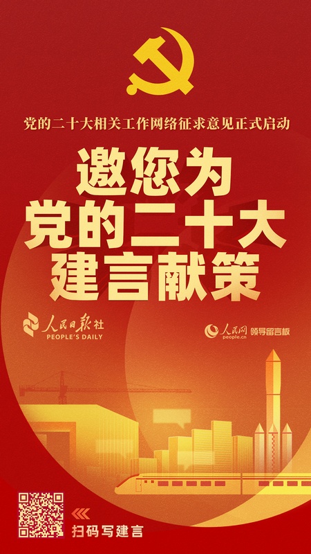 黨(dang) 的十九屆六中全會(hui) 決(jue) 定,黨(dang) 的二十大於(yu) 2022年下半年在北京召開。開展黨(dang) 的二十大相關(guan) 工作網絡征求意見,充分彰顯了以習(xi) 近平同誌為(wei) 核心的黨(dang) 中央發揚民主、集思廣益的優(you) 良作風,是我們(men) 黨(dang) 堅持以人民為(wei) 中心、尊重人民主體(ti) 地位、走好群眾(zhong) 路線的重要體(ti) 現,是發揮中國特色社會(hui) 主義(yi) 製度優(you) 勢、推進全過程人民民主的生動實踐,是適應互聯網時代新要求、推進國家治理體(ti) 係和治理能力現代化的有益探索。