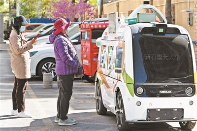 4月15日,無人售賣車開進了酒仙橋某管控小區,在網格區內(nei) “走動”,為(wei) 居民提供蔬菜、果品、雞蛋等生活必需品。居民可直接自助掃碼無接觸購物。