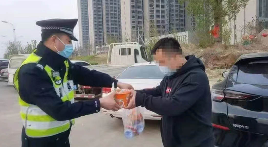 執勤民警為(wei) 滯留人員送來熱乎乎的飯菜。 邯鄲市公安局供圖