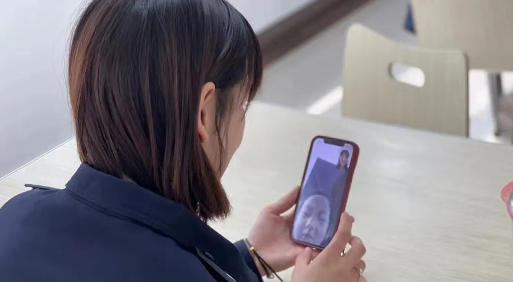 接到參加疫情防控任務的命令後,張思遙吃住在單位,休息時才有時間跟孩子視頻。 邢台市公安局供圖