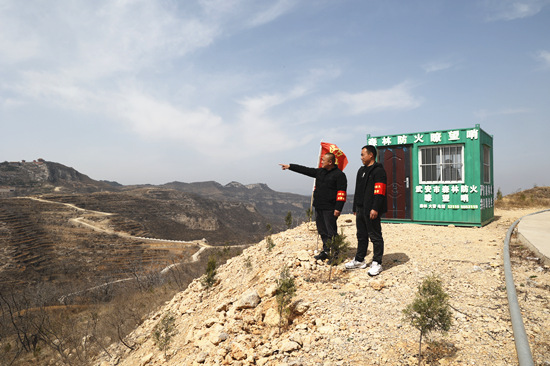 3月23日,武安市防火巡視人員正在查看防護區。李樹鋒攝