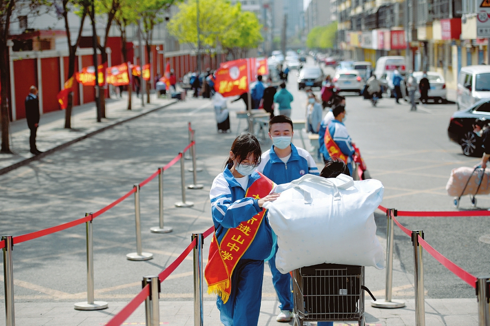 4月20日,太原市進山中學高三學生陸續返校報到,為(wei) 回校複課做準備。據了解,省城各中學高三年級21日封閉式複課,複課後,師生員工和服務管理人員將實行全封閉管理。(記者阮洋攝)