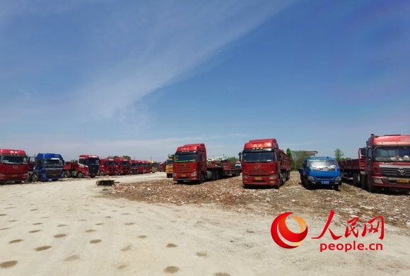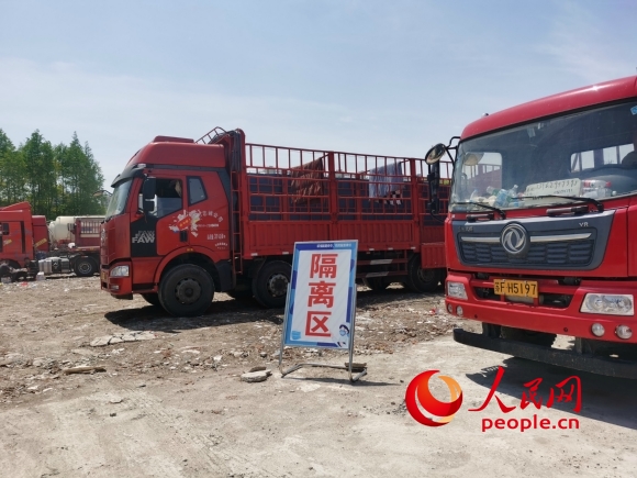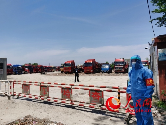 南通市崇川區陳橋街道疫情防控外來貨車集中停車點。人民網記者 王繼亮攝