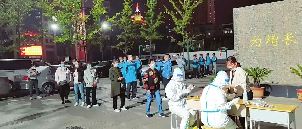在太原市第三十中學,醫務人員為(wei) 該校師生做核酸檢測。