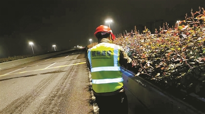 “結合常規巡查,新增加負責人、管理員、班組三級巡查模式,通過車巡看整體(ti) 、人巡觀細節,檢查市管高架綠化全域路線,分別做到每月、每半月、每兩(liang) 天一次全覆蓋,對於(yu) 高架主線和重點匝道做到每天巡查。”杭州市城管局市政中心相關(guan) 負責人介紹,2022年的“高架花廊”巡查主要以綠化長勢、灌溉情況、病蟲害、排水設施滲漏等內(nei) 容為(wei) 主,對隱患問題第一時間發現,第一時間處理。