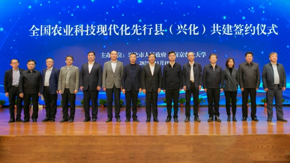 全國農(nong) 業(ye) 科技現代化先行縣(興(xing) 化)共建簽約儀(yi) 式現場。 興(xing) 化市委宣傳(chuan) 部供圖
