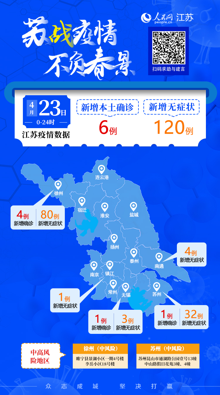 4月23日江蘇新增本土確診病例6例 本土無症狀感染者120例
