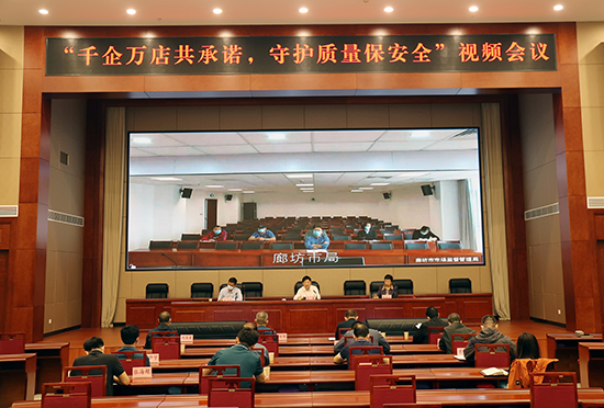 “千企萬(wan) 店共承諾 守護質量保安全”視頻會(hui) 議現場。 河北省市場監管局供圖